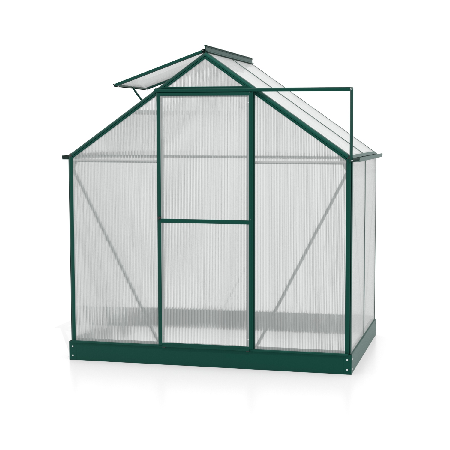 Obsahem balení jsou jednokřídlé dveře na pantech (š x v otvoru = 0,61 x 1,64 m), AL profily, prosklení, pozinkovaná ocelová základna, 1x střešní ventilační okénko s manuálním otevíráním, veškerý spojovací materiál. Ke skleníku je možné dokoupit řadu nadstandardního příslušenství - poličky, regály, další větrací střešní i boční okénka, automatické otvírače k těmto okénkům, okapové sady, teploměry, vlhkoměry, zavlažovací zařízení, elektrické odporové vytápění půdy.