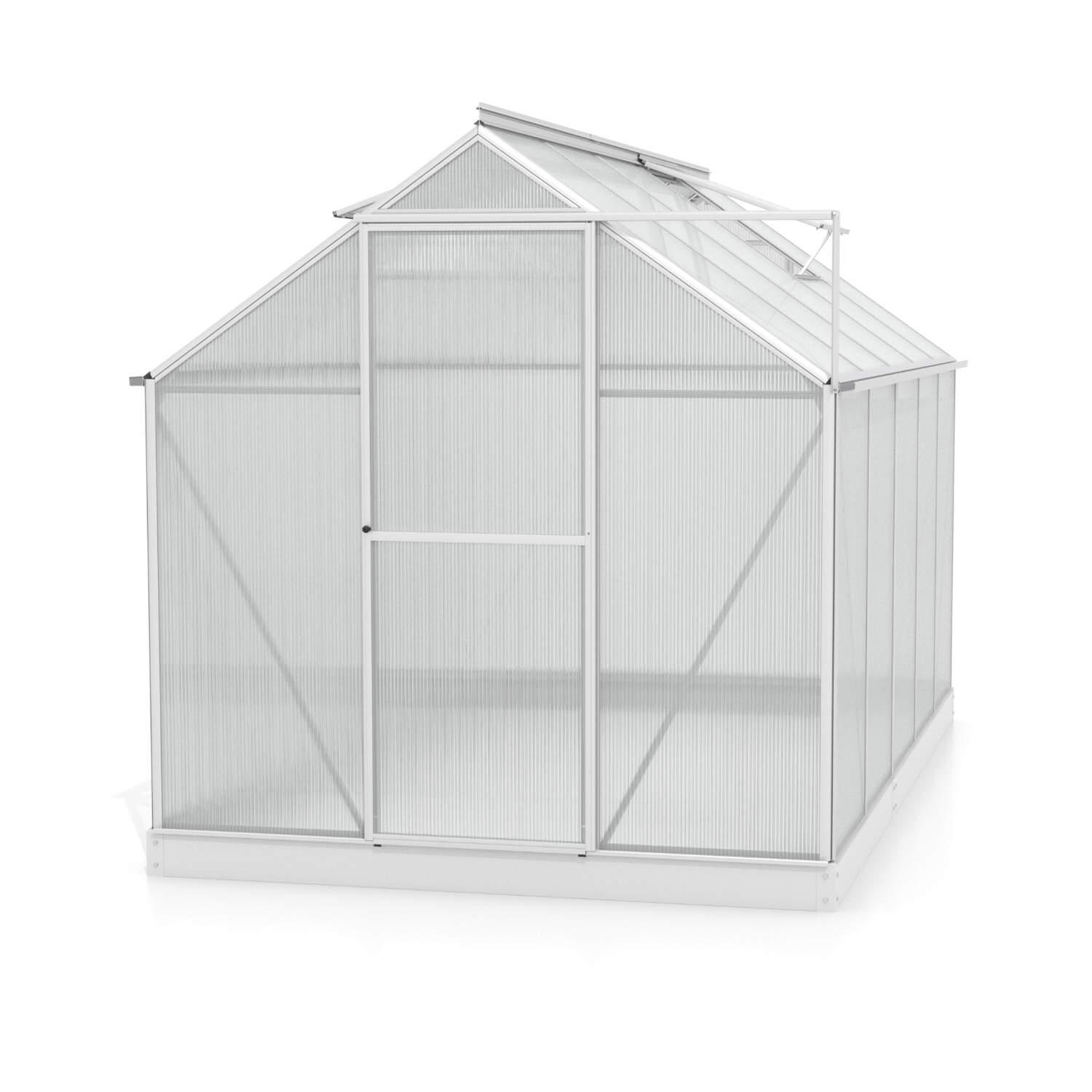 Obsahem balení jsou jednokřídlé dveře na pantech (š x v otvoru = 0,61 x 1,64 m), AL profily, prosklení, pozinkovaná ocelová základna, 2x střešní ventilační okénko s manuálním otevíráním, veškerý spojovací materiál. Ke skleníku je možné dokoupit řadu nadstandardního příslušenství - poličky, regály, další větrací střešní i boční okénka, automatické otvírače k těmto okénkům, okapové sady, teploměry, vlhkoměry, zavlažovací zařízení, elektrické odporové vytápění půdy.