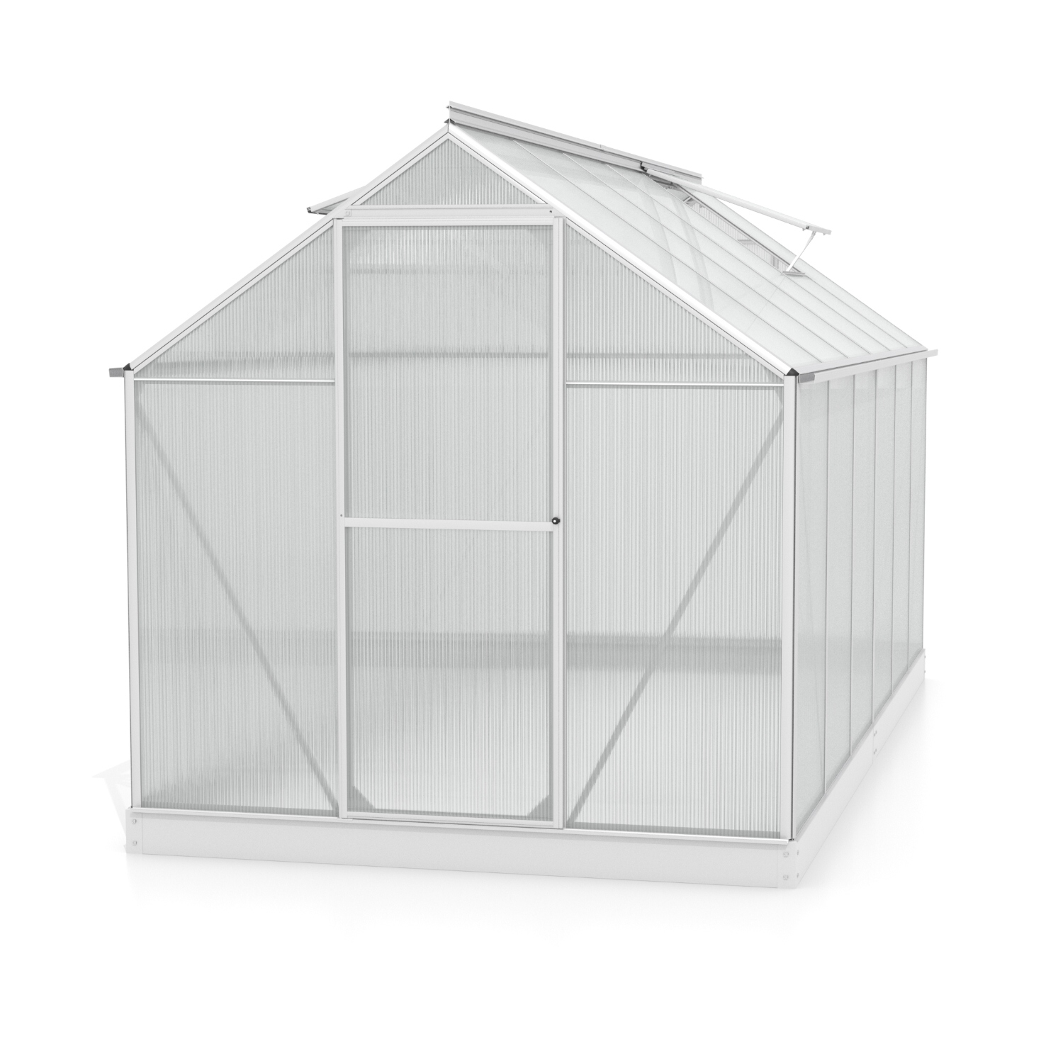 Obsahem balení jsou jednokřídlé dveře na pantech (š x v otvoru = 0,61 x 1,64 m), AL profily, prosklení, pozinkovaná ocelová základna, 2x střešní ventilační okénko s manuálním otevíráním, veškerý spojovací materiál. Ke skleníku je možné dokoupit řadu nadstandardního příslušenství - poličky, regály, další větrací střešní i boční okénka, automatické otvírače k těmto okénkům, okapové sady, teploměry, vlhkoměry, zavlažovací zařízení, elektrické odporové vytápění půdy.