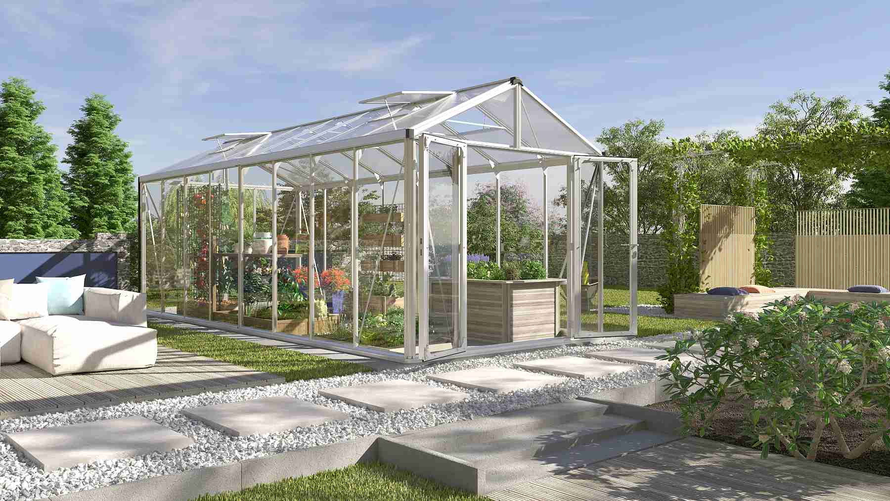 Skleníky řady ZEUS COMFORT jsou zařazeny do kategorie PREMIUM - skleník je vyrobený značkovým výrobcem z Velké Británie. Skleník je vyrobený z eloxovaných hliníkových profilů, prosklení je z kaleného čirého skla síly 3 mm. Čiré sklo zajišťuje výbornou světelnou propustnost, takže do skleníku je krásně vidět ze všech stran a kdykoliv se můžete pokochat pohledem na pěstovanou zeleninu nebo květiny. Prosklení střechy je z tepelně-izolačních komůrkových polykarbonátových desek o síle 10 mm. Prosklení je ukotveno do konstrukce pomocí přítlačných hliníkových lišt (boční stěny) nebo je zasunuto do nosných profilů (střecha).