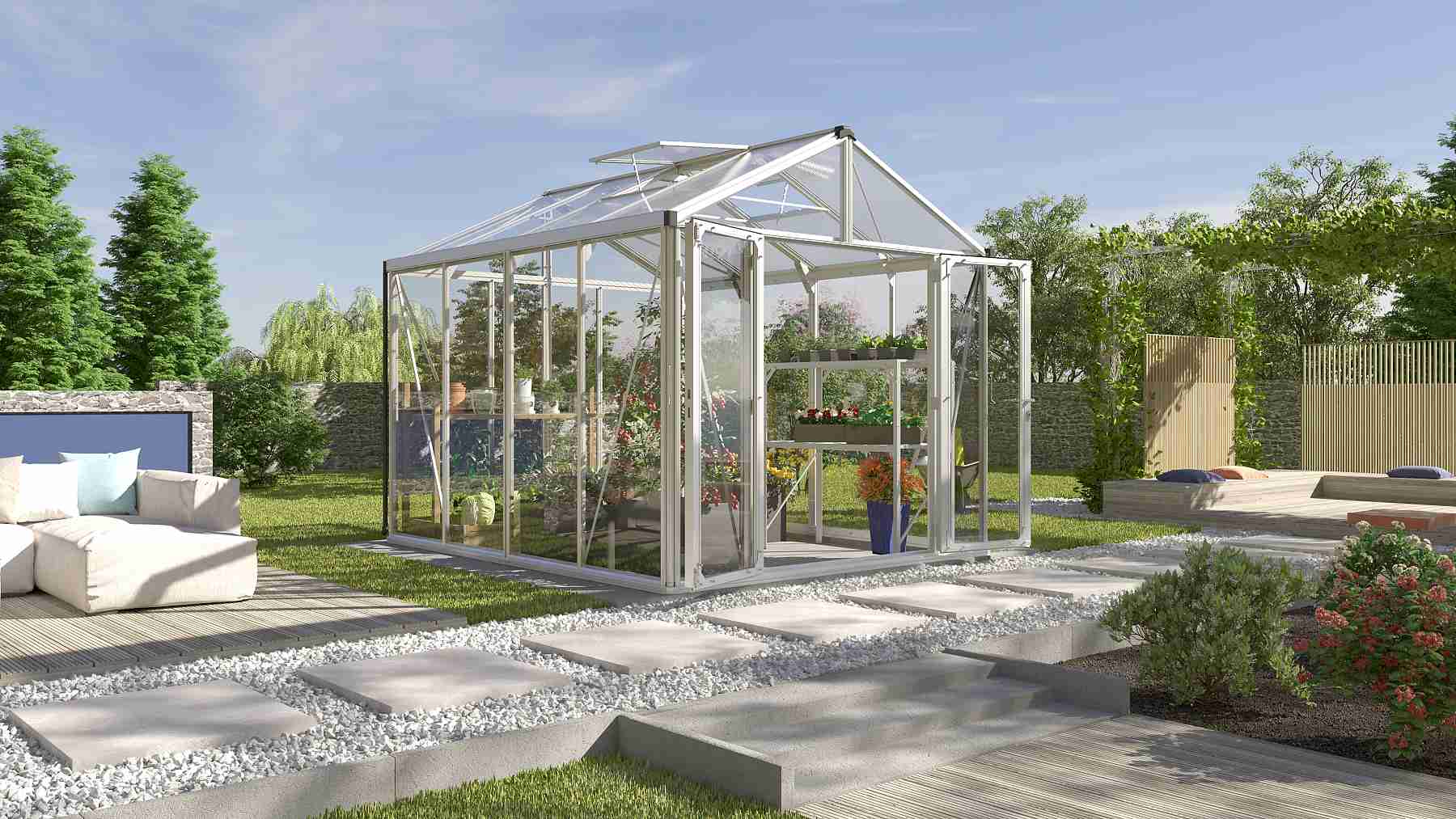 Skleníky řady ZEUS COMFORT jsou zařazeny do kategorie PREMIUM - skleník je vyrobený značkovým výrobcem z Velké Británie. Skleník je vyrobený z eloxovaných hliníkových profilů, prosklení je z kaleného čirého skla síly 3 mm. Čiré sklo zajišťuje výbornou světelnou propustnost, takže do skleníku je krásně vidět ze všech stran a kdykoliv se můžete pokochat pohledem na pěstovanou zeleninu nebo květiny. Prosklení střechy je z tepelně-izolačních komůrkových polykarbonátových desek o síle 10 mm. Prosklení je ukotveno do konstrukce pomocí přítlačných hliníkových lišt (boční stěny) nebo je zasunuto do nosných profilů (střecha).