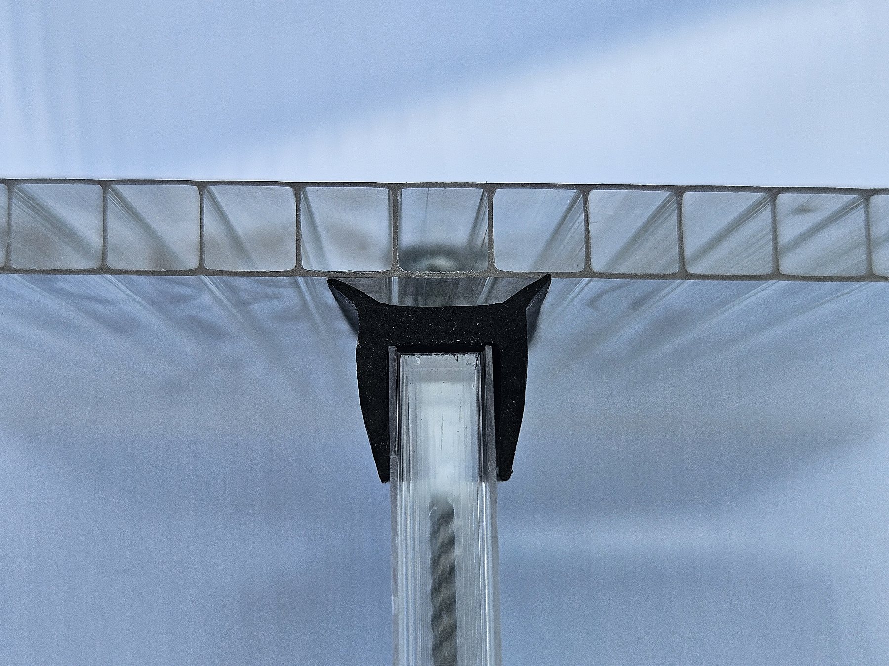 Těsnění je vyrobené z EPDM (Ethylen-Propylen-Dien-Monomer, což je druh syntetické pryže), který je plně kompatibilní s polykarbonátem.