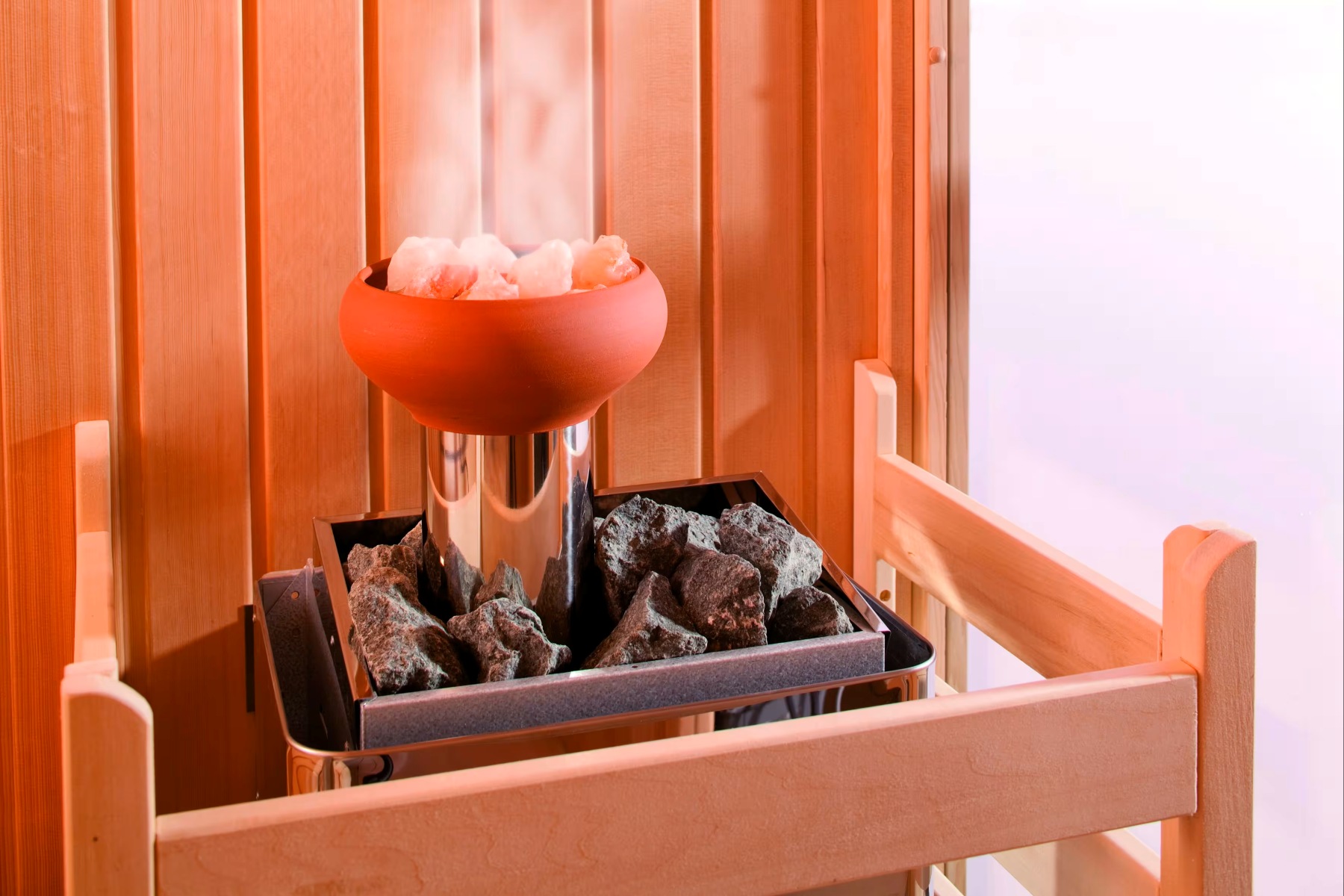 Solný krystal také napomáhá vyváženému pH pokožky a může předcházet možným zánětům. Sada obsahuje nerezový válec na kamna, terakotový hrnec a 1 kg solných krystalů, takže ji snadno umístíte do sauny bez nutnosti složité montáže a ihned si užijete příjemný a zdravý vzduch.