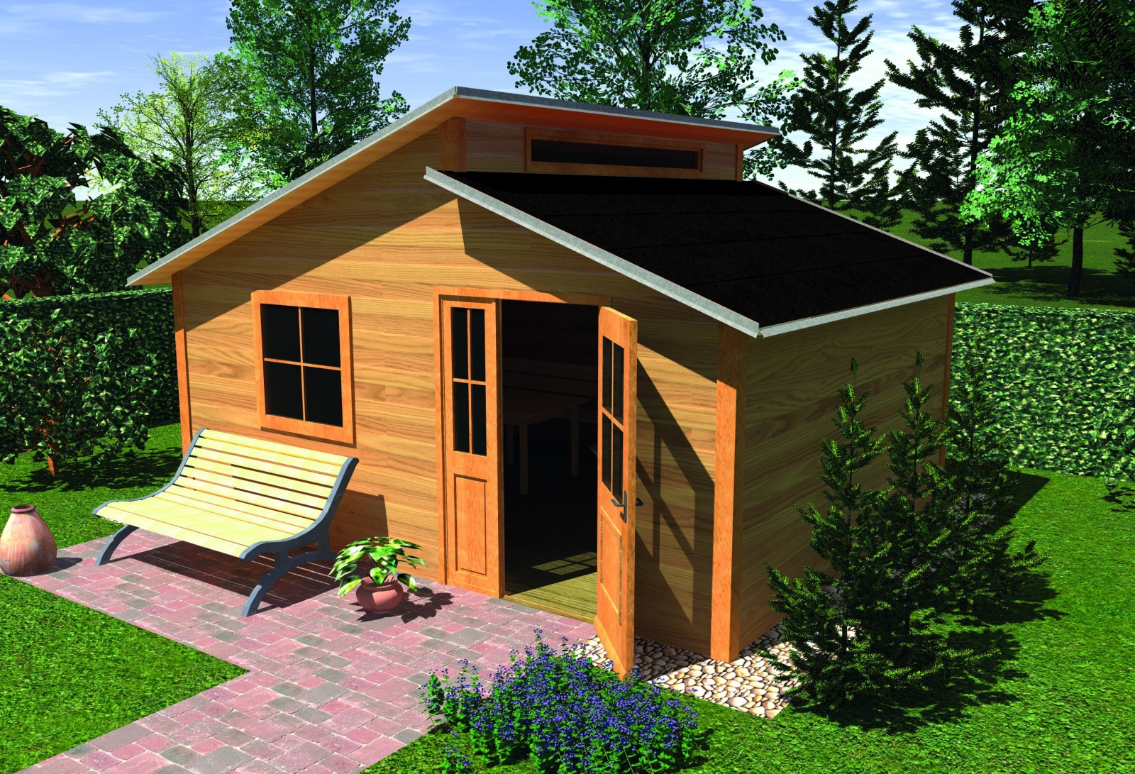 Velice důležitý doplněk dřevěného domku. Srolovaný asfaltový pás je jednodušší obdobou klasického střešního asfaltového šindelu. Vhodné pro střechy se sklonem více než 11o. Velikou výhodou při pokládce je spodní samolepící strana, takže pás potom pouze stačí na střeše odmotat, odříznout přesnou délku, položit, strhnout spodní fólii a přitlačit. Na vybraných místech pás přitlučete hřebíky. Protože pás je široký 50 cm, je nutné na střeše přeložit několik pásů přes sebe. Zbytek zajistí slunce. Při zahřátí dojde ke změknutí pásu a dva sousední pásy se na překladu přitaví k sobě (stejně jako u asfaltových šindelů) a současně se přilepí i ke střeše. Asfaltový pás pokládejte vždy kolmo ke spádu střechy.