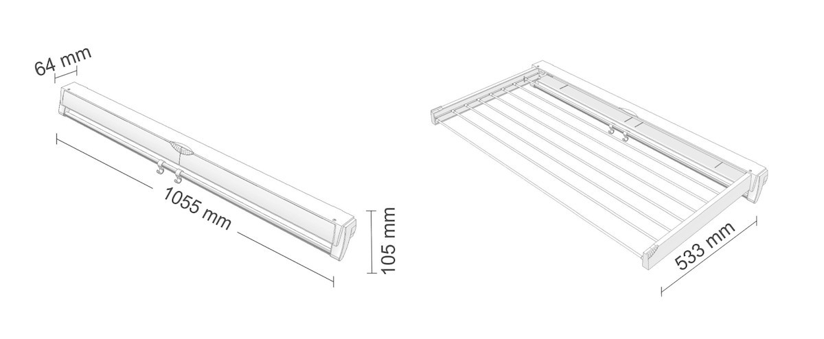- sušak je možné sklopením ramen uzavřít do pouzdra na zdi