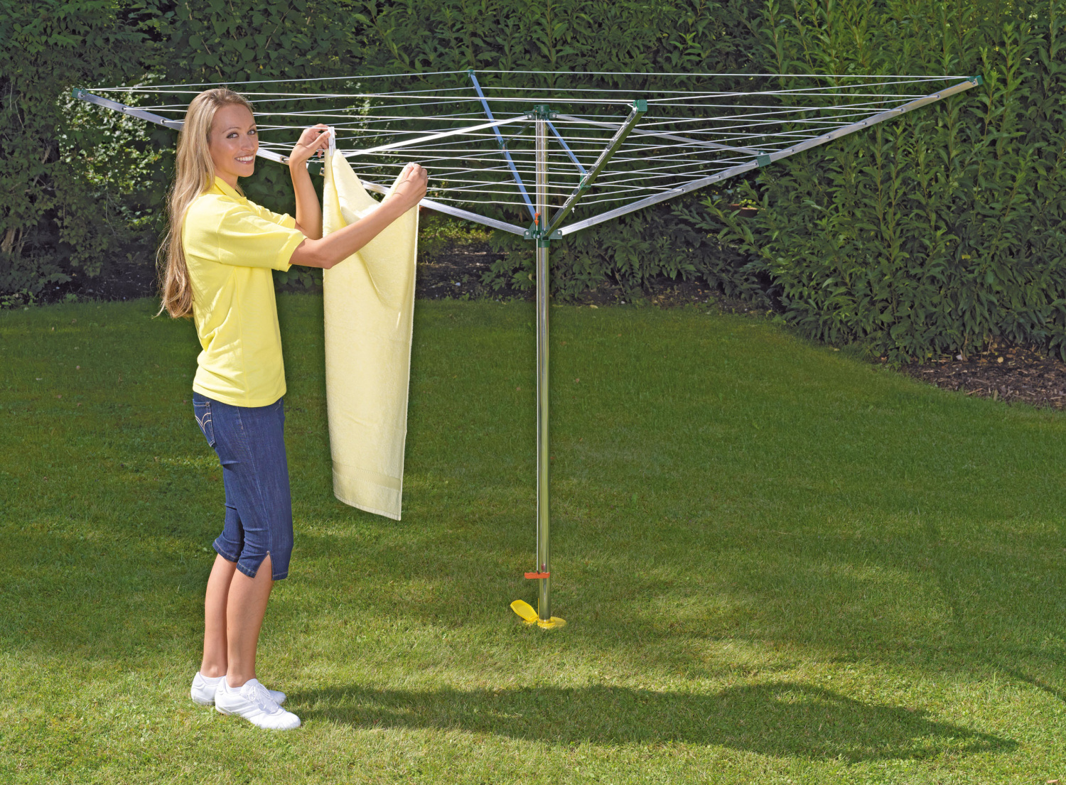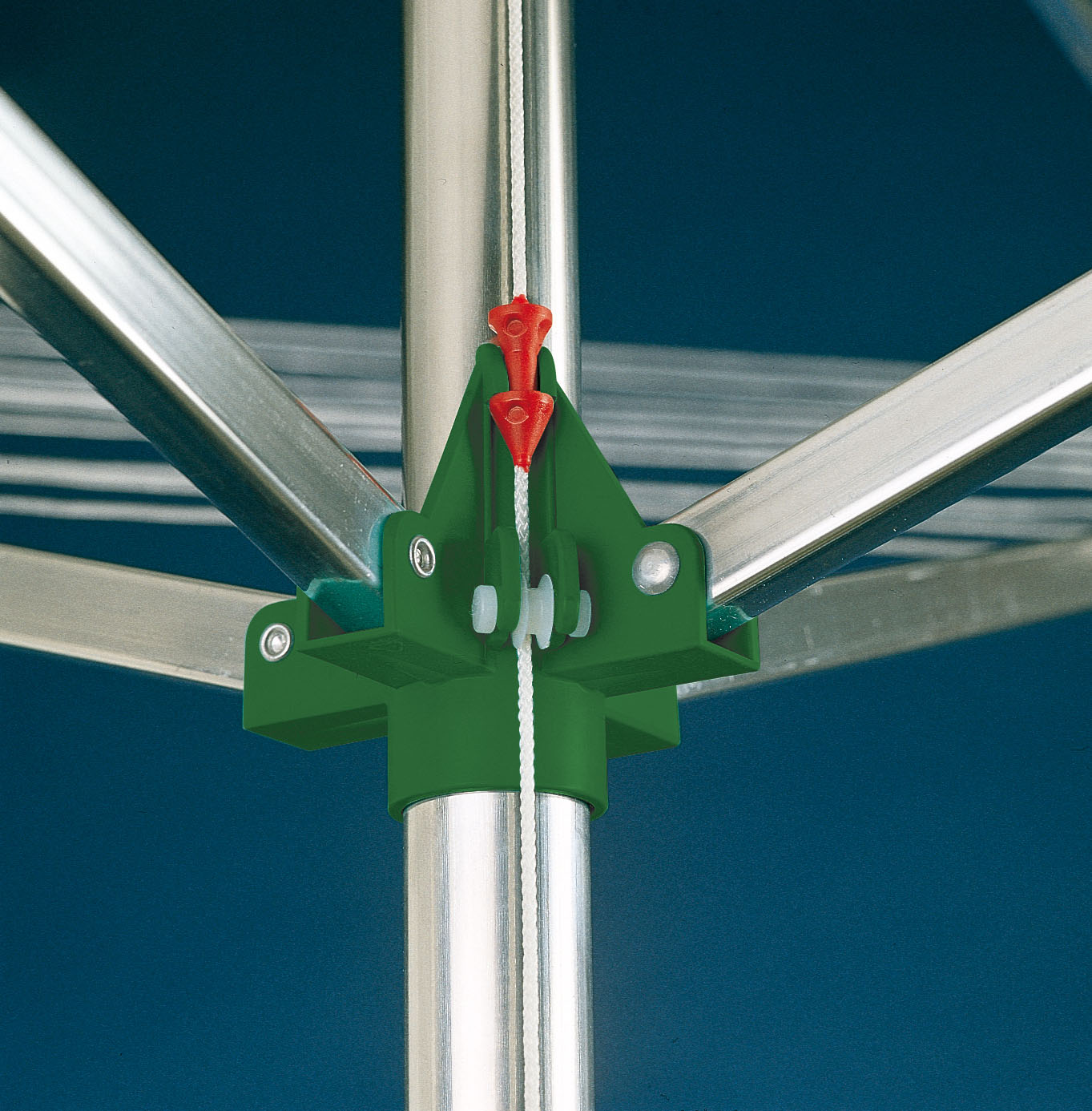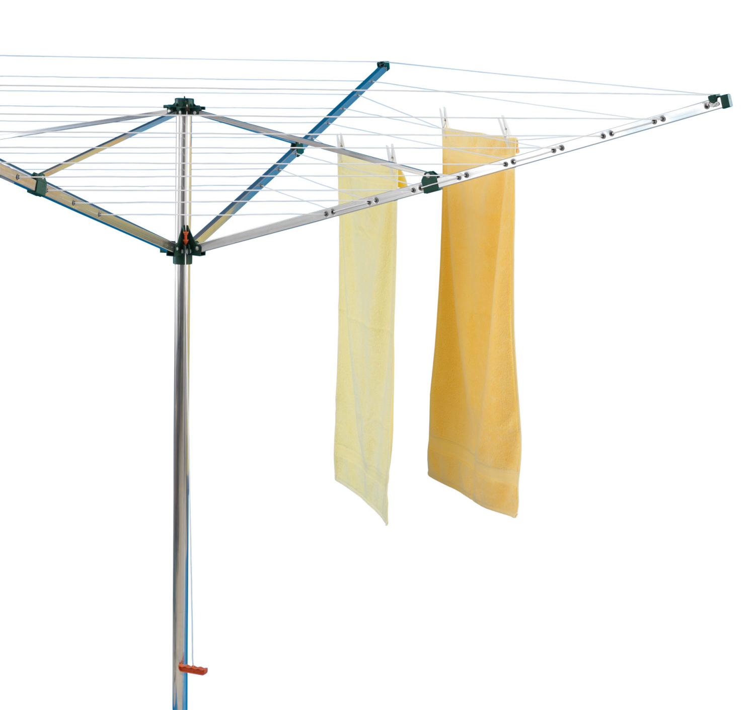 JUWEL PRIMA 600 - základní verze celohliníkového venkovního sušáku na prádlo. Nosná trubka o průměru 40 mm. Jednoduchá obsluha s dvoustupňovým mechanismem. Plastové kotvící pouzdro určené pro zabetonování. Přibližně 52 m šňůry na prádlo. K sušáku lze dokoupit ochranný obal (vak) na zip, případně zemní šroub pro univerzálnější montáž na zahradě (se zemním šroubem sušák postavíte všude tam, kde lze šroub pevně zavrtat do země).