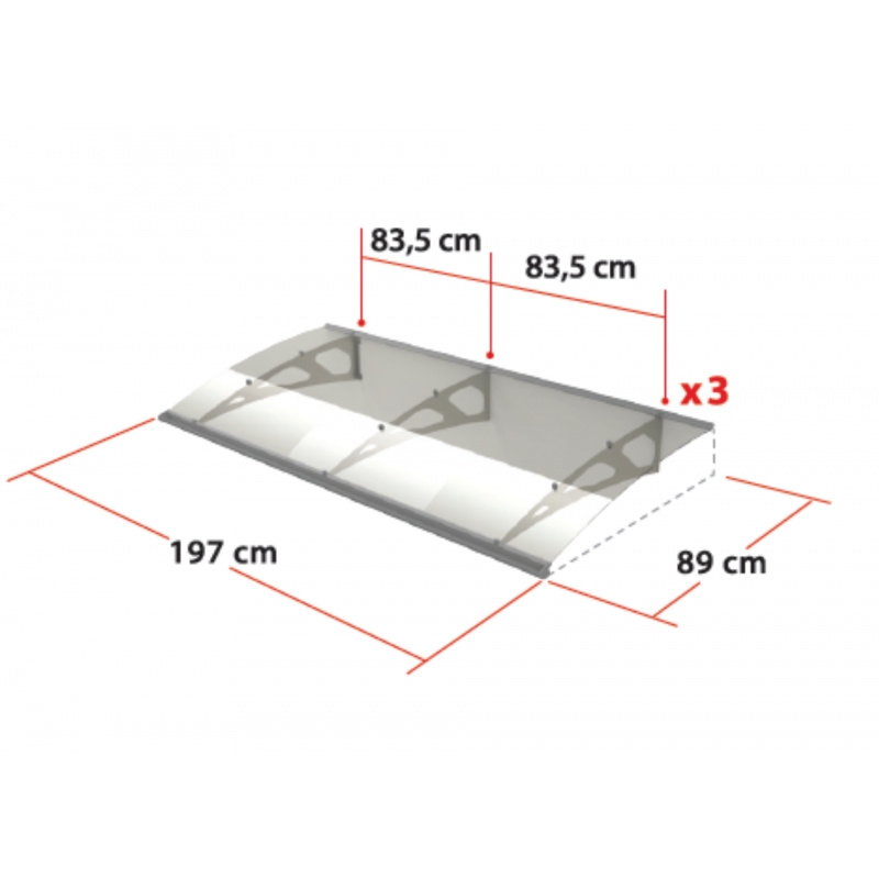 Stříška nad dveře vyrobená z eloxovaného hliníku. Na rozdíl od stříšek s plastovou konstrukcí hliníková konstrukce perfektně odolává vlivům počasí, i po letech je pevná a stabilní. V zimě mrazem nekřehne a ani na silném letním slunci nedochází ke změnám barvy. Stříška je zasklená úplně průhledným čirým plexisklem 4 mm.