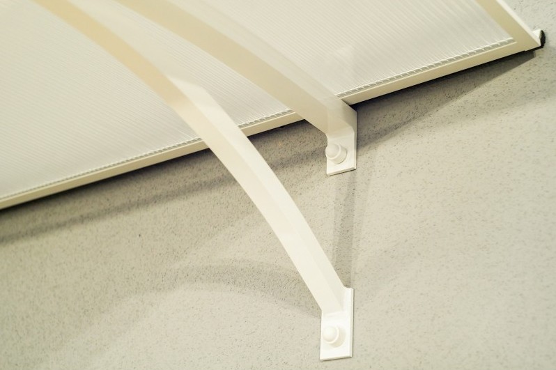 Stříška nad dveře vyrobená z práškově lakovaného hliníku. Na rozdíl od stříšek s plastovou konstrukcí hliníková konstrukce perfektně odolává vlivům počasí, i po letech je pevná a stabilní. V zimě mrazem nekřehne a ani na silném letním slunci nedochází ke změnám barvy. Stříška je zasklená komůrkovým polykarbonátem síly 4,5 mm s oboustranným UV filtrem (značka LEXAN® - vyrobeno v Rakousku). Jde o velmi kvalitní značkový polykarbonát od jednoho z nejlepších světových výrobců.
