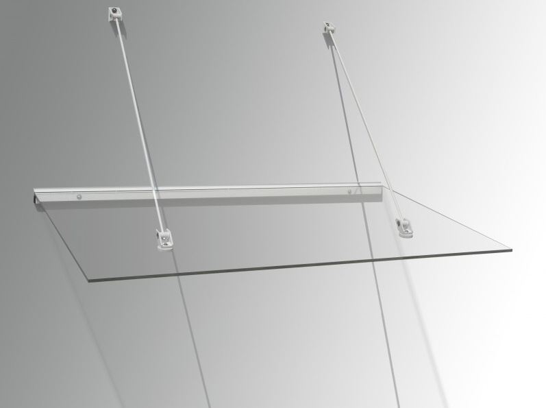 Stříška nad dveře vyrobená z práškově lakovaného hliníku. Na rozdíl od stříšek s plastovou konstrukcí hliníková konstrukce perfektně odolává vlivům počasí, i po letech je pevná a stabilní. V zimě mrazem nekřehne a ani na silném letním slunci nedochází ke změnám barvy. Stříška je zasklená úplně průhledným čirým plexisklem 10 mm.