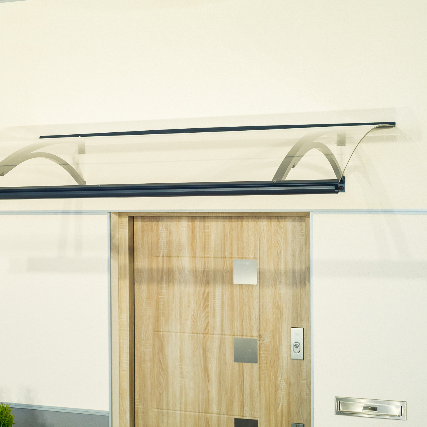 Stříška nad dveře vyrobená z práškově lakovaného hliníku. Na rozdíl od stříšek s plastovou konstrukcí hliníková konstrukce perfektně odolává vlivům počasí, i po letech je pevná a stabilní. V zimě mrazem nekřehne a ani na silném letním slunci nedochází ke změnám barvy. Stříška je zasklená úplně průhledným čirým plexisklem 4 mm.