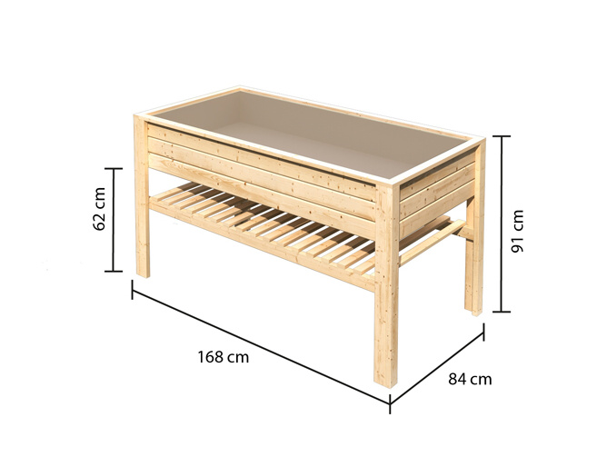Vyvýšený záhon KARIBU na 4 nohách nabízí perfektní řešení pro umístění Vašich rostlin. Květiny, bylinky, zeleninu, to vše můžete svobodně umístit prakticky kdekoliv na zahradě. Vaše oblíbené rostliny můžete pěstovat bez vytváření klasických záhonů, na terase nebo na štěrkové cestě. Pohodlná výška 82 cm potěší Vaše záda, protože tak omezíte namáhavé ohýbání se na minimum. Zvýšený záhon je v přírodním provedení (natur), takže se určitě přizpůsobí Vaší zahradě. Vyvýšený záhon je složen z dřevěných profilů síly 19 mm složených v systému pero / drážka. Uvnitř záhonu je plastová fólie. Provedení natur je nutné před použitím ošetřit vhodnou povrchovou úpravou pro venkovní dřevo (podle vlastní volby) - tzn. protiplísňový nátěr plus např. lazura. Při vrstvení půdy ve vyvýšeném záhonu doporučujeme strukturu půdy přizpůsobit ji svým rostlinám.