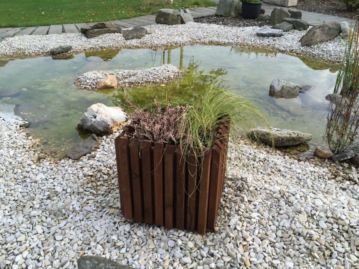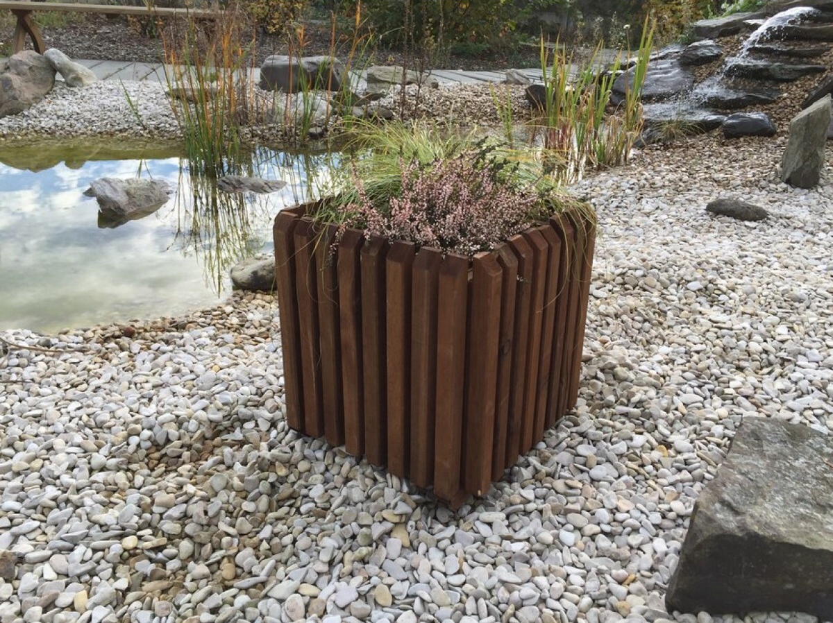 Designový box na květiny o rozměru š 40 x d 40 x v 40 cm. Dřevo je ošetřeno tlakovou impregnací, přesto ho doporučujeme ošetřit vhodnou povrchovou úpravou pro venkovní dřevo (podle vlastní volby) - tzn. protiplísňový nátěr plus např. lazura. Při vrstvení půdy ve vyvýšeném záhonu doporučujeme strukturu půdy přizpůsobit rostlinám. Box je vystlán geotextílií a má dvě ucha na přenášení. Box má dno.