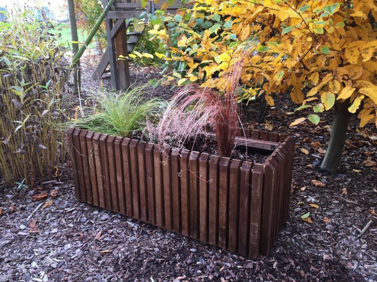 Designový box na květiny o rozměru š 40 x d 100 x v 40 cm. Dřevo je ošetřeno tlakovou impregnací, přesto ho doporučujeme ošetřit vhodnou povrchovou úpravou pro venkovní dřevo (podle vlastní volby) - tzn. protiplísňový nátěr plus např. lazura. Při vrstvení půdy ve vyvýšeném záhonu doporučujeme strukturu půdy přizpůsobit rostlinám. Box je vystlán geotextílií a má dno.