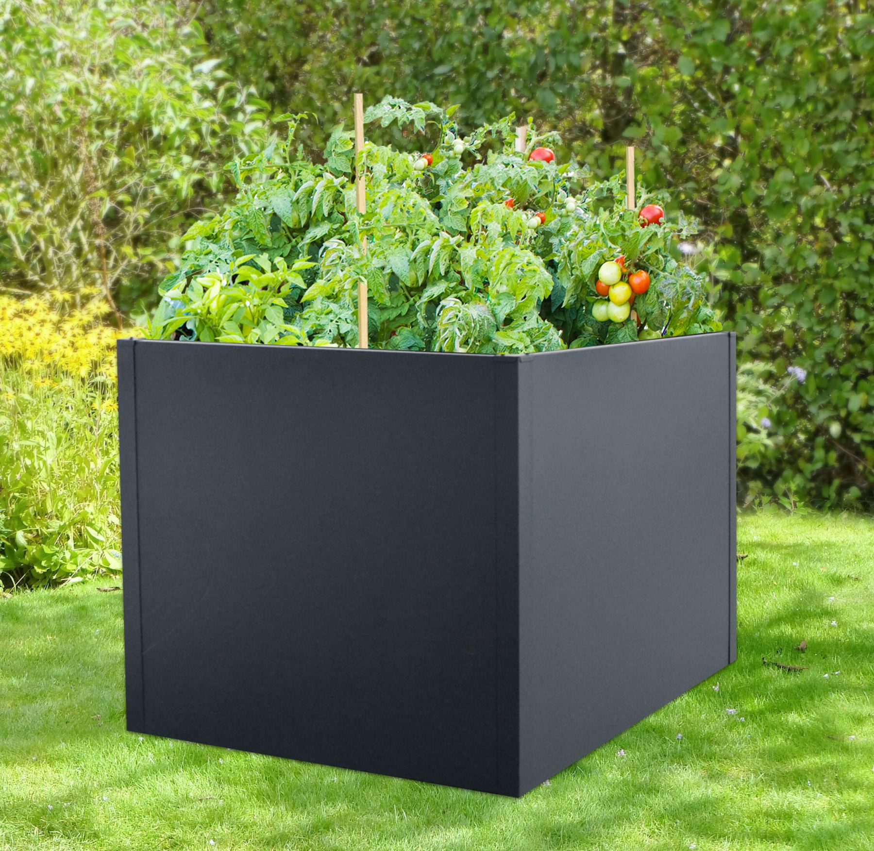 Vyvýšený záhon LANITPLAST PLANT 100 je čtvercový plechový záhon pro pěstování bylinek nebo květin. Květiny, bylinky, zeleninu, to vše můžete svobodně umístit prakticky kdekoliv na zahradě. Záhon nemá dno. Při vrstvení půdy ve vyvýšeném záhonu doporučujeme strukturu půdy přizpůsobit rostlinám. Záhon je složen z několika dílů, které se pouze jednoduše sešroubují. Ocelový plech síly 0,6 mm má velmi kvalitní povrchovou úpravu, protože je galvanicky pozinkovaný (na povrchu je vytvořená silná vrstva ochranného nekorodujícího zinku) plus je nastříkán vypalovací práškovou barvou v odstínu antracit RAL 7016.