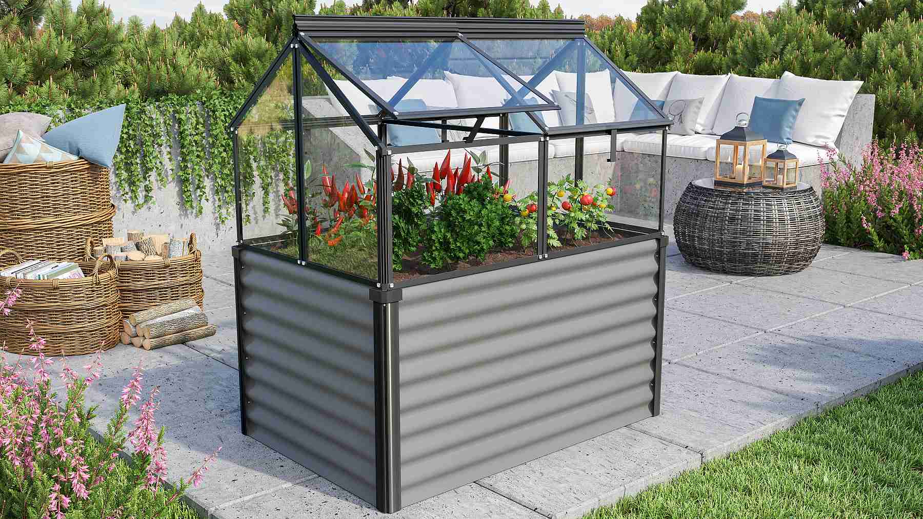 - vyvýšený záhon je vyroben z osvědčeného materiálu Zincalume (ocelový plech potažený vrstvou slitiny zinku a hliníku)
