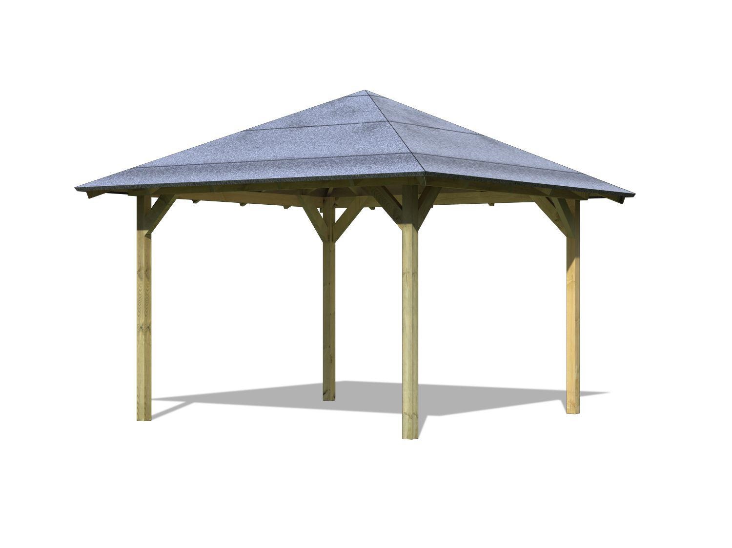 Pavilon má základní čtvercový tvar a díky vnitřnímu rozměru 2,71 x 2,71 m nabízí dostatek prostoru pro letní posezení, grilování, relaxaci i rodinnou oslavu. Celková zastřešená plocha je 3,57 x 3,57 m. Výška boku je 1,99 m a výška hřebene 2,97 m. Čtyři sloupky 9 x 9 cm podpírají střechu s masivními příčnými podpěrami. Konstrukce altánu je tlakově impregnována a je tak dobře chráněna proti dřevokazným houbám i hmyzu, ale i proti nepříznivým povětrnostním podmínkám. Impregnace je zdravotně nezávadná a naprosto bezpečná. Vzhledem k velkým plochám střechy a zatížení větrem je nutné připevnit altán k zemi pomocí odpovídajících H kotev v délce cca 60 cm (nejsou obsahem dodávky).