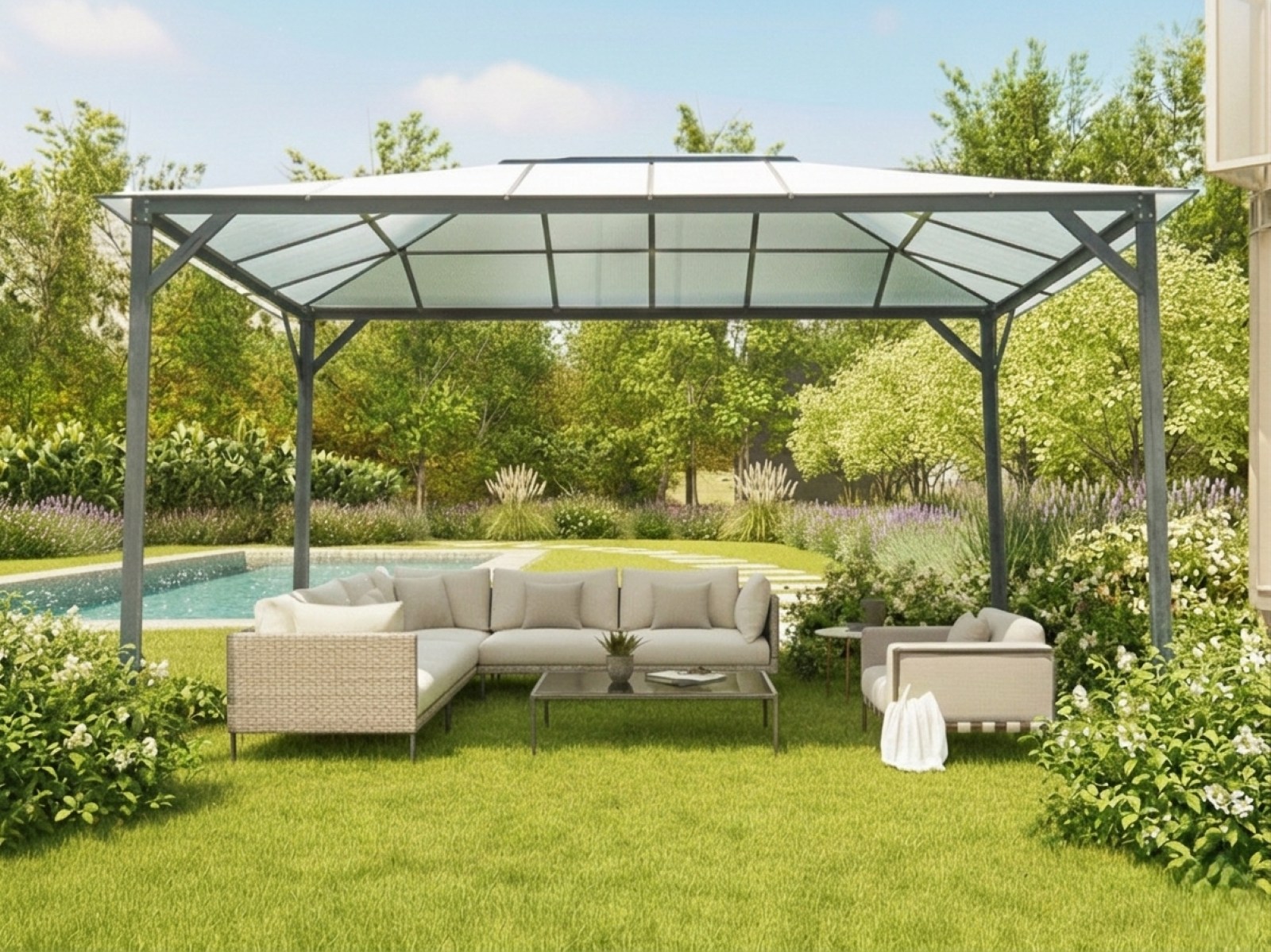 - střecha z čirého komůrkového polykarbonátu 6 mm