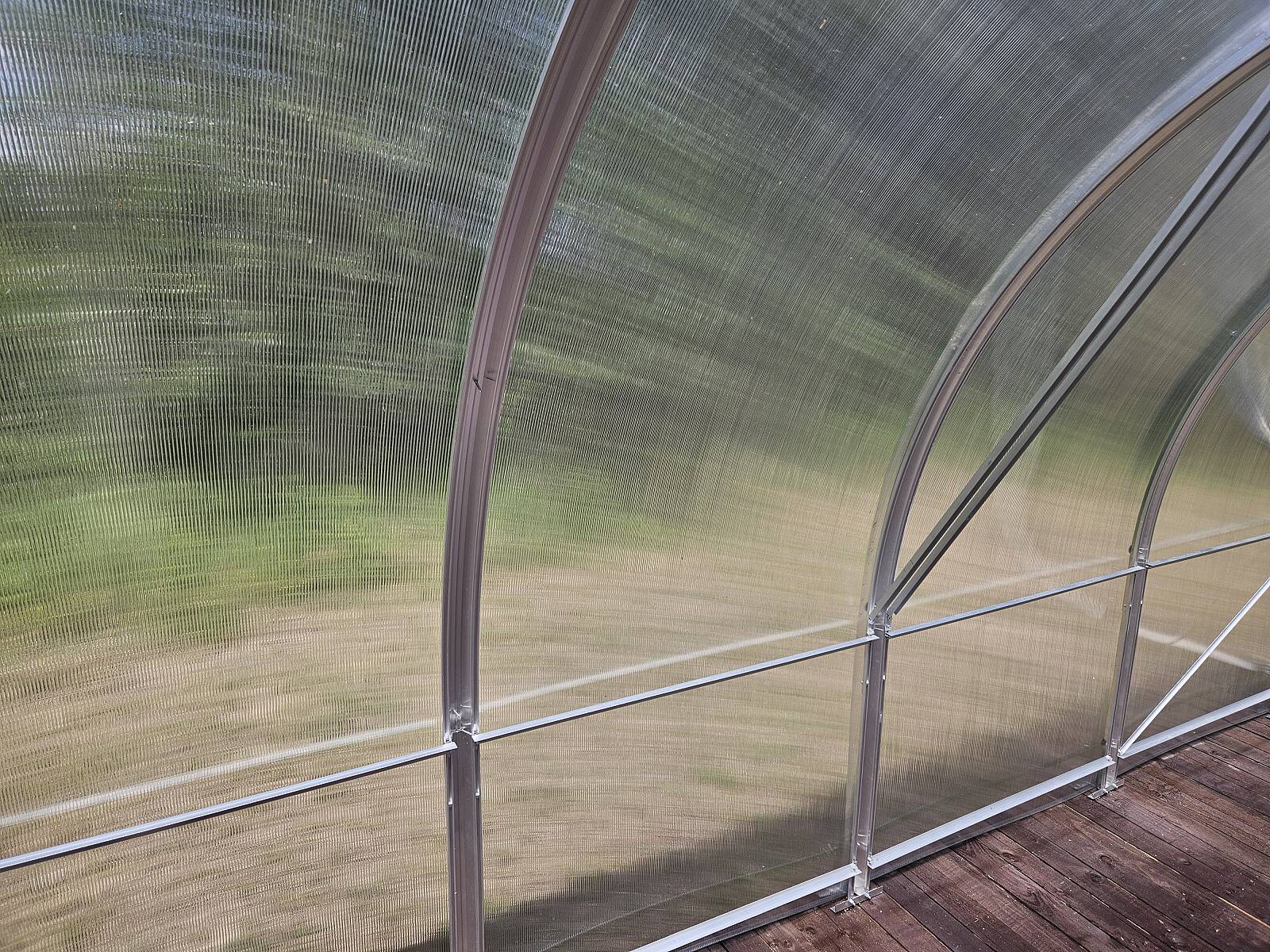 - vnitřní podpěry obloukové konstrukce výrazně zvyšující odolnost skleníku proti zatížení sněhem