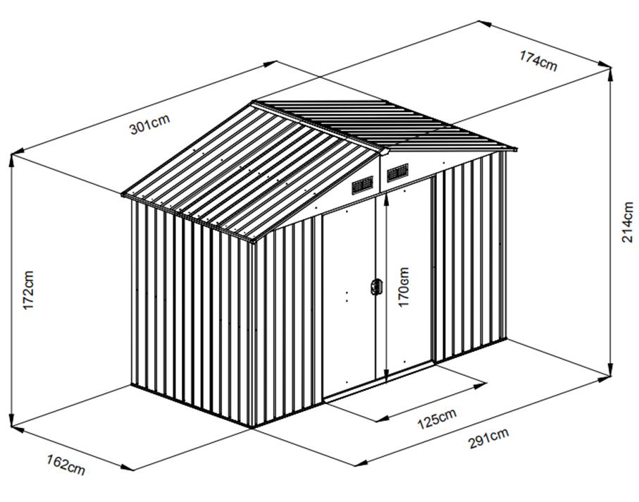 Domek je možné použít k uskladnění zahrádkářských, sportovních, bazénových, grilovacích, campingových, motoristických a dalších potřeb. Jde o jeden z nejkvalitnějších domků na českém trhu se sílou stěny 0,25 mm. Moderní design, barva, snadná montáž, celoroční použití. Kvalitní materiál s povrchovou úpravou - elektrolyticky pozinkovaný plech s žárově nanesenou barvou. Sedlová střecha, čelní posuvné dveře. Možnost uzamčení (zámek není obsahem dodávky).
