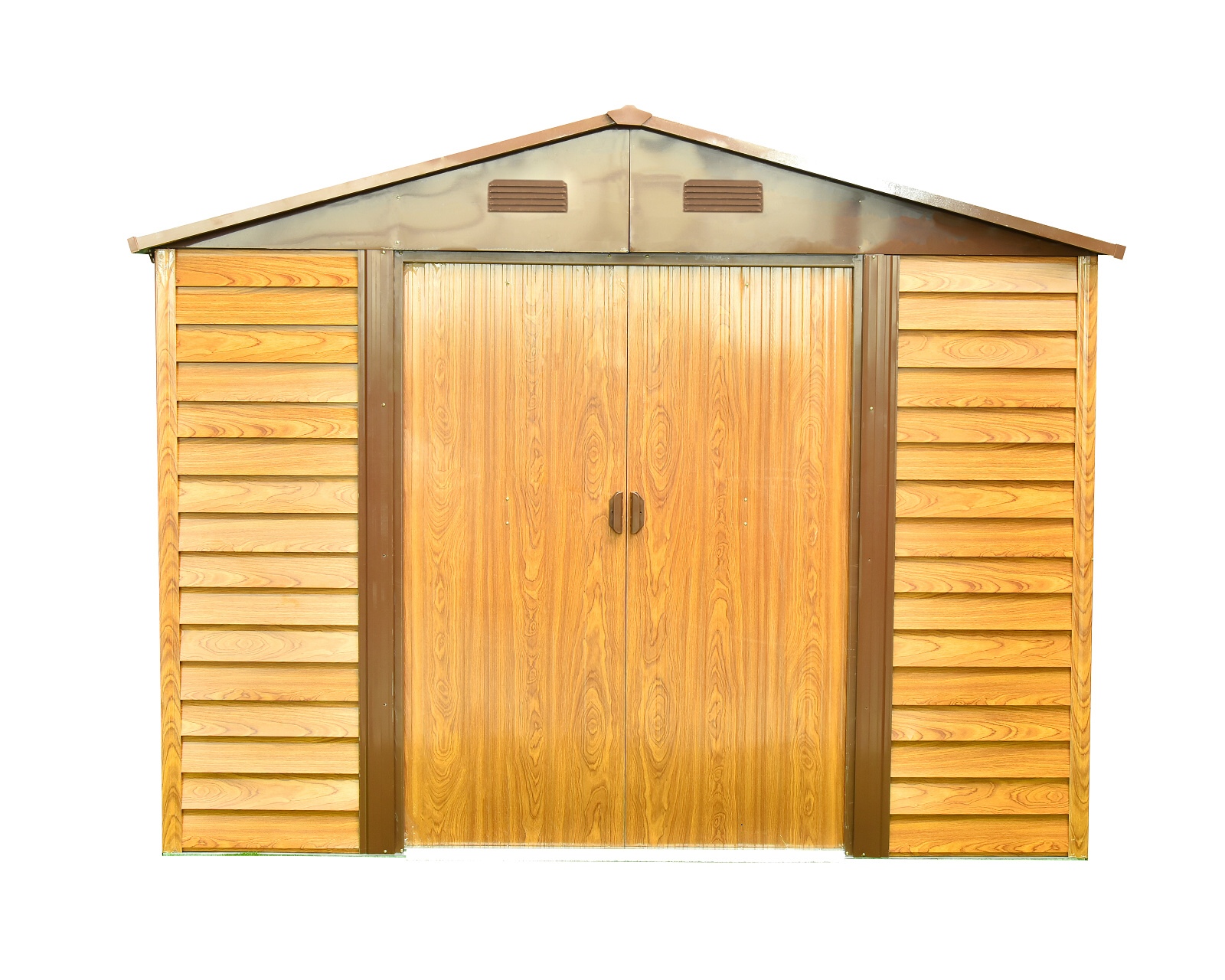 Domek je vyrobený z pozinkovaného vodorovně profilovaného plechu a vzhledově (designově i barevně) se přibližuje dřevěnému domku. Domek je možné použít k uskladnění zahrádkářských, sportovních, bazénových, grilovacích, campingových, motoristických a dalších potřeb. Moderní design, barva, snadná montáž, celoroční použití. Kvalitní materiál s povrchovou úpravou - elektrolyticky pozinkovaný plech s žárově nanesenou barvou. Sedlová střecha, čelní posuvné dveře. Možnost uzamčení (zámek není obsahem dodávky).