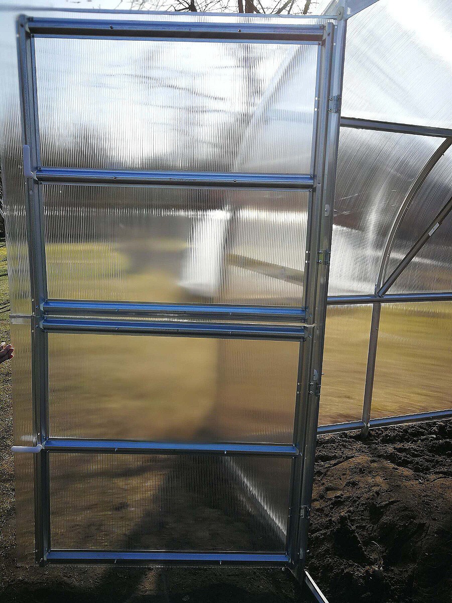 Dodatečné zadní dveře pro skleníky LANITPLAST GLADUS, po instalaci je skleník průchozí.