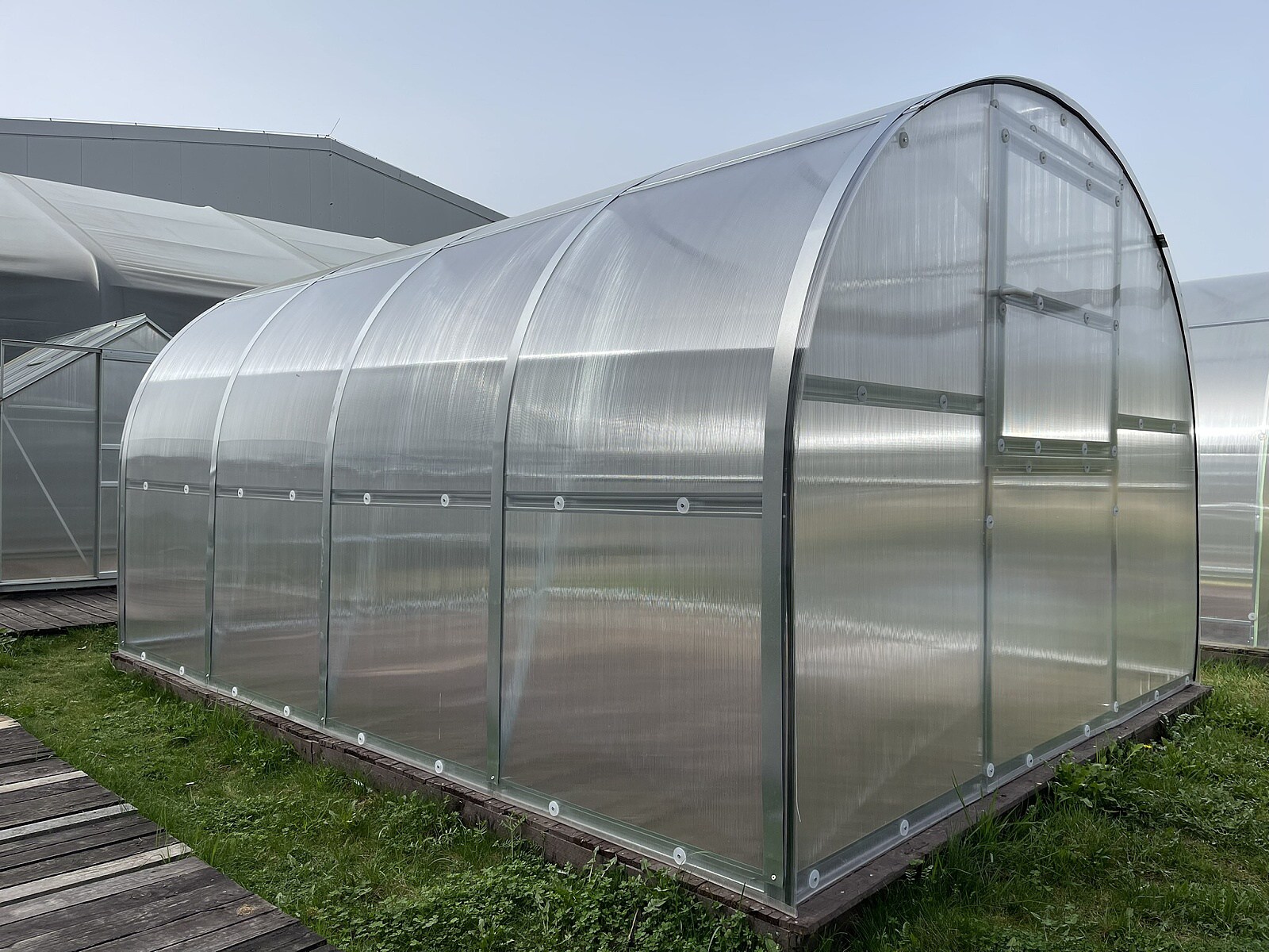 | obloukový skleník LANITPLAST TIBERUS | pozinkovaný ocelový profil 1mm, rozteč oblouků 100 cm, dvojité dveře vpředu, ventilační okno vzadu, prosklení nutno vyřezat z dodaných polykarbonátových desek, možnost montáže střešního okna - ano |