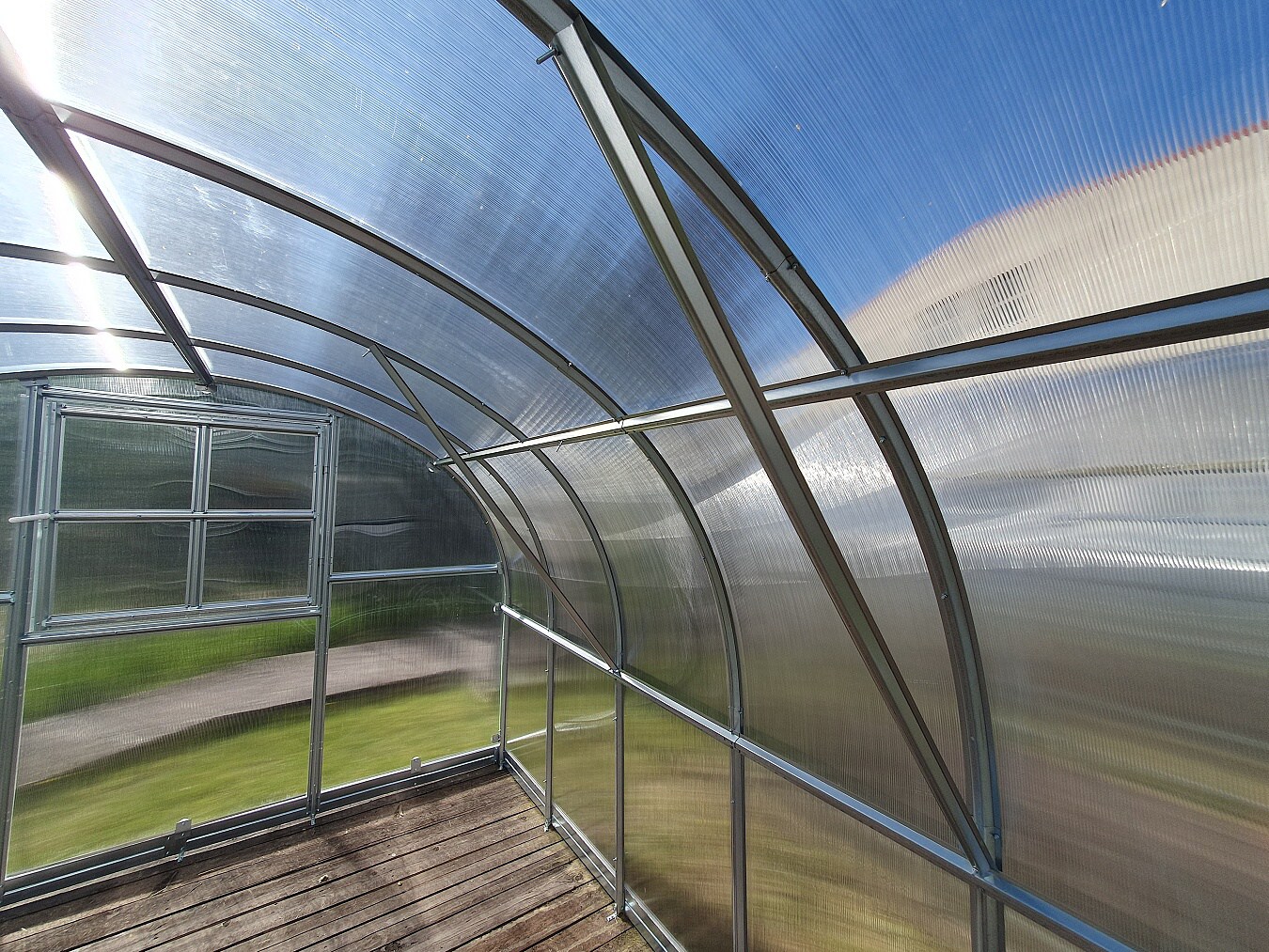 - 6 vnitřních podpěr obloukové konstrukce výrazně zvyšujících odolnost skleníku proti sněhu