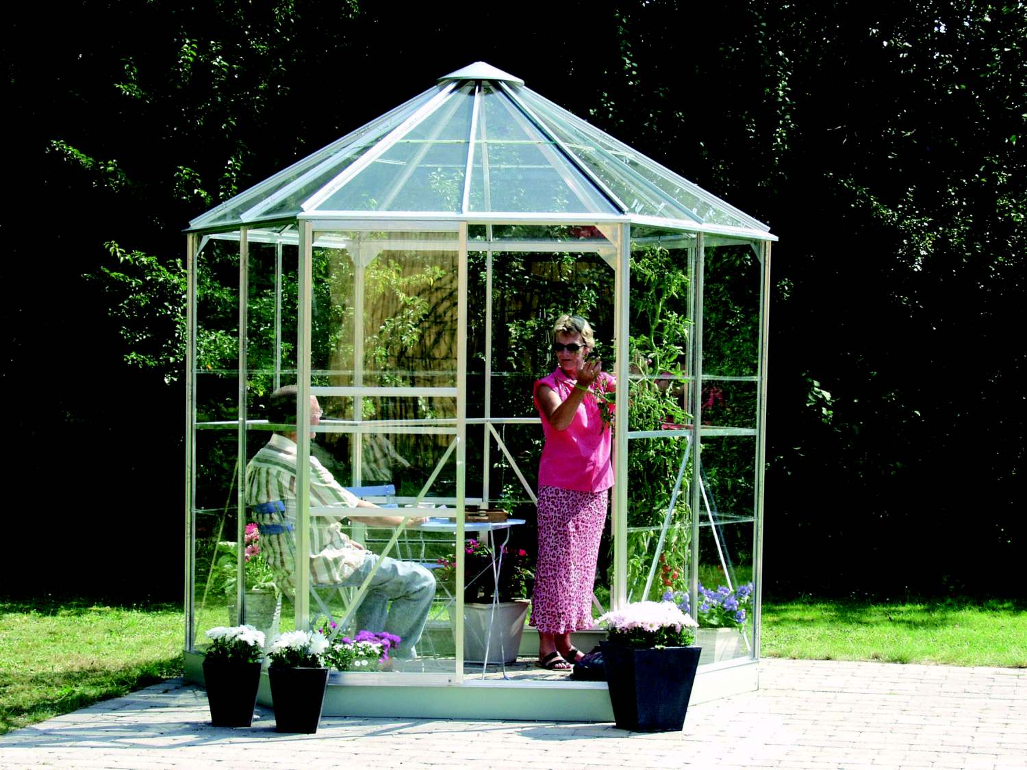 Pavilon HERA 4500 je zařazený do kategorie PREMIUM - pavilon je vyrobený značkovým výrobcem z Velké Británie. Pavilon je vyrobený z eloxovaných hliníkových profilů. Prosklení stěn je z kaleného čirého skla síly 3 mm (stěny) a z nerozbitného komůrkového polykarbonátu 6 mm (střecha). Čiré sklo zajišťuje výbornou světelnou propustnost, takže do povilonu je krásně vidět ze všech stran a můžete se kochat pohledem na pěstovanou zeleninu nebo květiny. Prosklení střechy je z vysoce kvalitního dvoustěnného polykarbonáty s UV filtrem (nekřehne, nežloutne) od evropského výrobce. Polykarbonát i sklo jsou do hliníkových profilů uchycené pomocí ocelových sponek. Součástí pavilonu je i pozinkovaná ocelová základna o výšce 6 cm. Na nerozbitnost polykarbonátu krupobitím poskytujeme prodlouženou záruku v délce 10 let.