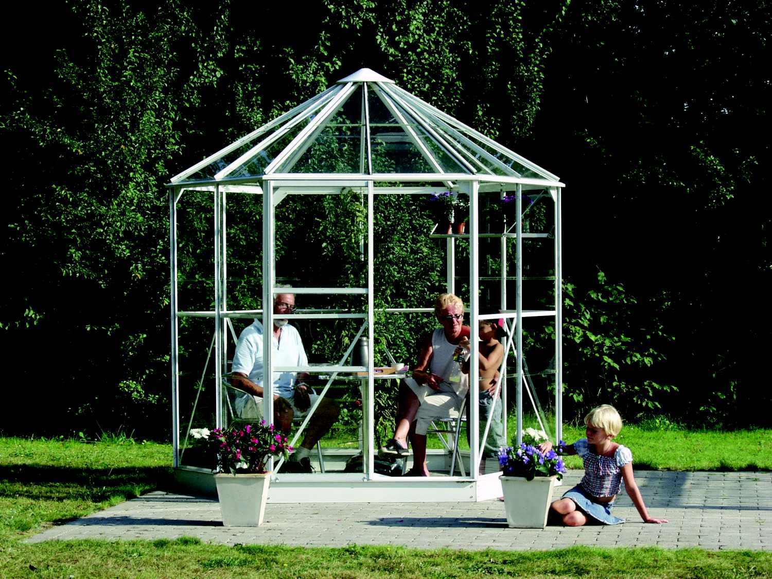 Pavilon HERA 4500 je zařazený do kategorie PREMIUM - pavilon je vyrobený značkovým výrobcem z Velké Británie. Pavilon je vyrobený z eloxovaných hliníkových profilů. Prosklení stěn je z kaleného čirého skla síly 3 mm (stěny) a z nerozbitného komůrkového polykarbonátu 6 mm (střecha). Čiré sklo zajišťuje výbornou světelnou propustnost, takže do povilonu je krásně vidět ze všech stran a můžete se kochat pohledem na pěstovanou zeleninu nebo květiny. Prosklení střechy je z vysoce kvalitního dvoustěnného polykarbonáty s UV filtrem (nekřehne, nežloutne) od evropského výrobce. Polykarbonát i sklo jsou do hliníkových profilů uchycené pomocí ocelových sponek. Součástí pavilonu je i pozinkovaná ocelová základna o výšce 6 cm. Na nerozbitnost polykarbonátu krupobitím poskytujeme prodlouženou záruku v délce 10 let.