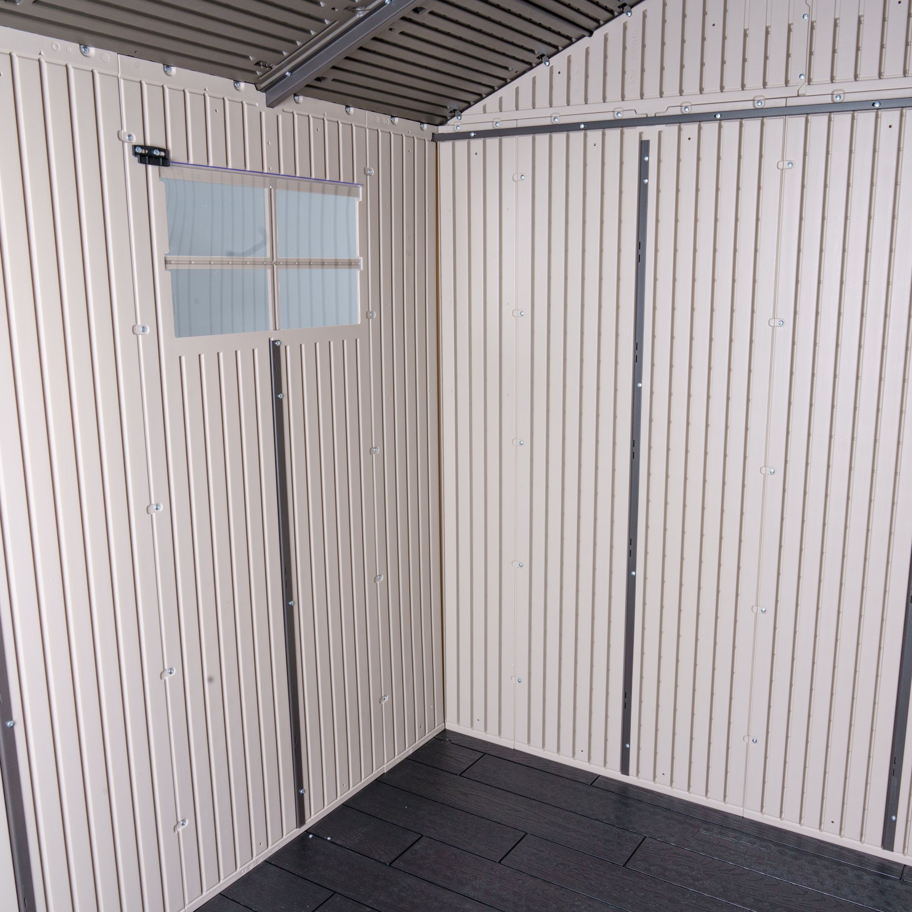 - plastová podlaha je už obsažena v dodávce (kovové ani dřevěné domky ji nemají a musíte ji pak dokupovat)