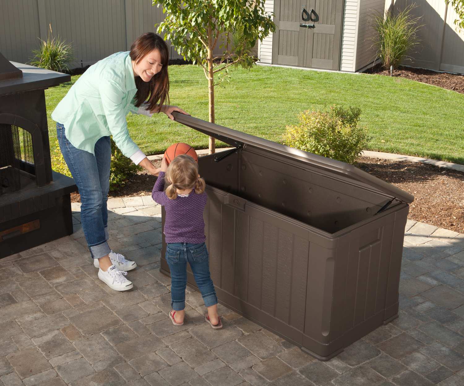 Velký plastový box o objemu 440 litrů pro uskladnění vašich drobných zahradních potřeb. Je vyroben z masivního polyethylenu v moderním designu. S pomocí této bedny vyřešíte problém, kam uložit venkovní hračky vašich dětí, bazénové příslušenství nebo nejčastěji látkové nebo molitanové povlaky venkovních židlí. Své využití nalezne i jako stůl pro zahradní párty. Box je možné proti nenechavcům uzamknout visacím zámkem (není obsahem dodávky).
