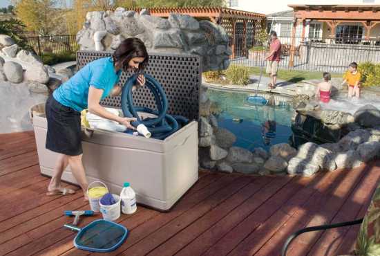 Obrovský plastový box o objemu 495 litrů pro uskladnění vašich drobných zahradních potřeb. Je vyroben z masivního polyethylenu v moderním designu. S pomocí této bedny vyřešíte problém, kam uložit venkovní hračky vašich dětí, bazénové příslušenství nebo nejčastěji látkové nebo molitanové povlaky venkovních židlí. Své využití nalezne i jako stůl pro zahradní párty. Box je možné proti nenechavcům uzamknout visacím zámkem (není obsahem dodávky).