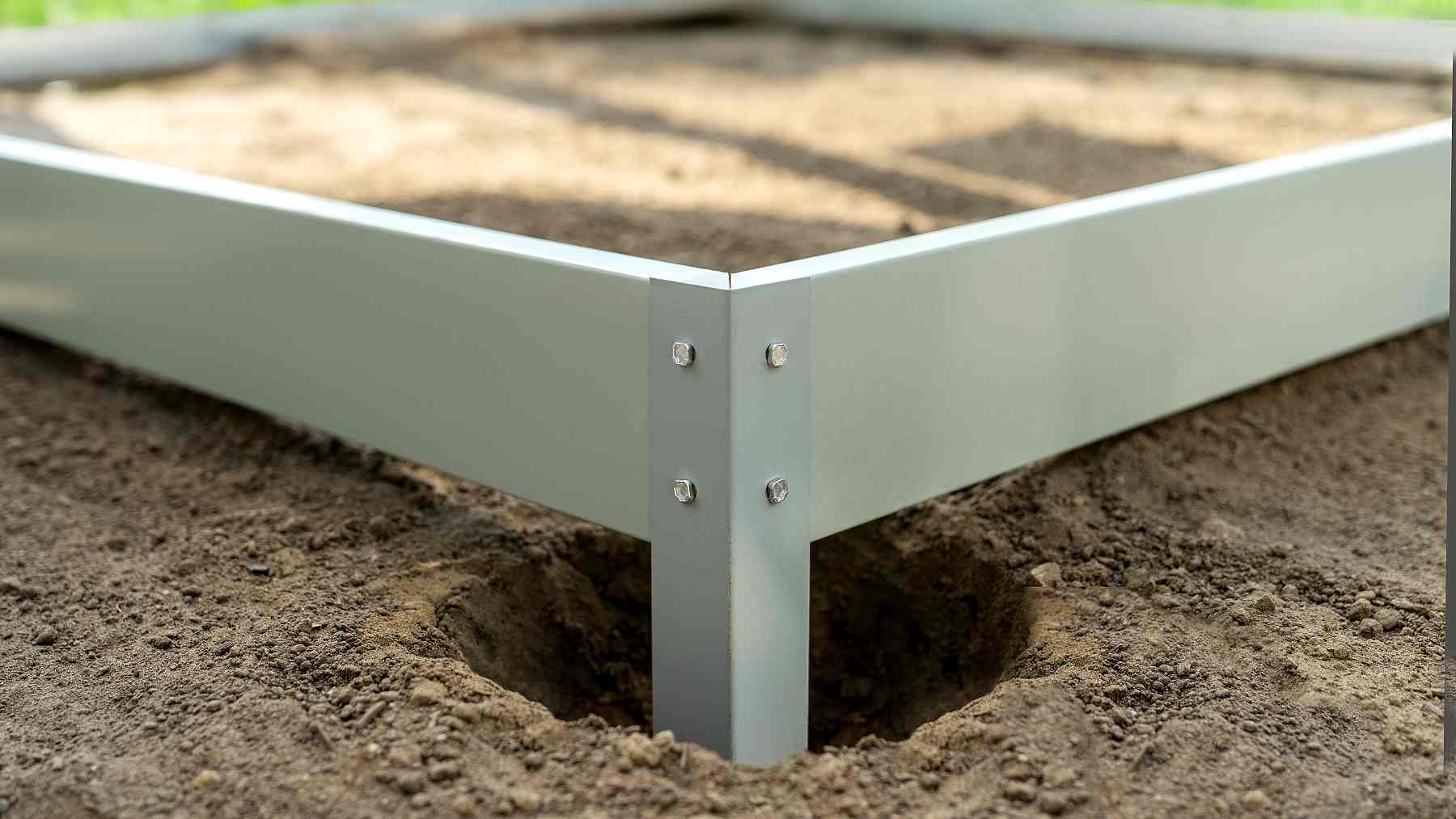 - Snadné ukotvení: Montáž je navržena pro maximální efektivitu. Stačí vykopat otvory v místech kotevních noh, ty vložit do země a zalít trochou betonu (bodové kotvení). To stačí k tomu, aby byl skleník bezpečně zajištěn proti větru.